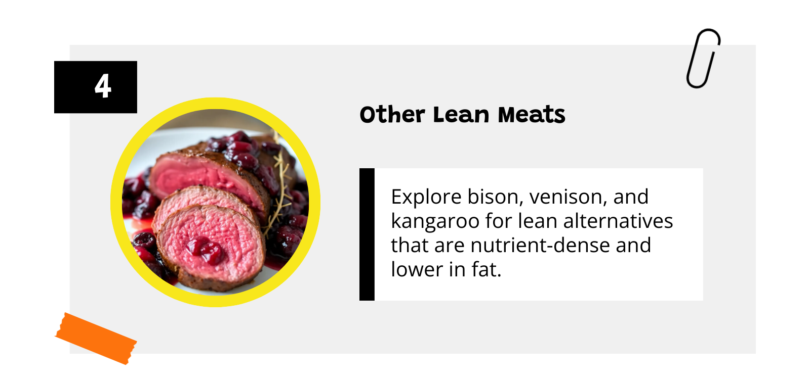 Besides ostrich, there are other unconventional meats worth considering for a healthier diet. Examples include bison, venison, and kangaroo, each offering lean alternatives that are also lower in fat and calories compared to the more commonly consumed meats. Bison, for instance, is densely rich in nutrients, containing high levels of protein and iron while providing a rich flavour profile. Similarly, venison is lean and lower in cholesterol, making it a heart-friendly choice.